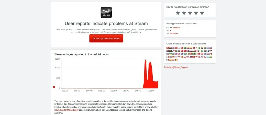 Valve пока не прокомментировала инцидент, но проблема сохраняется до сих пор — сервис то оживает, то вновь падает. Об этом свидетельствует актуальная статистика на сайте DownDetector.