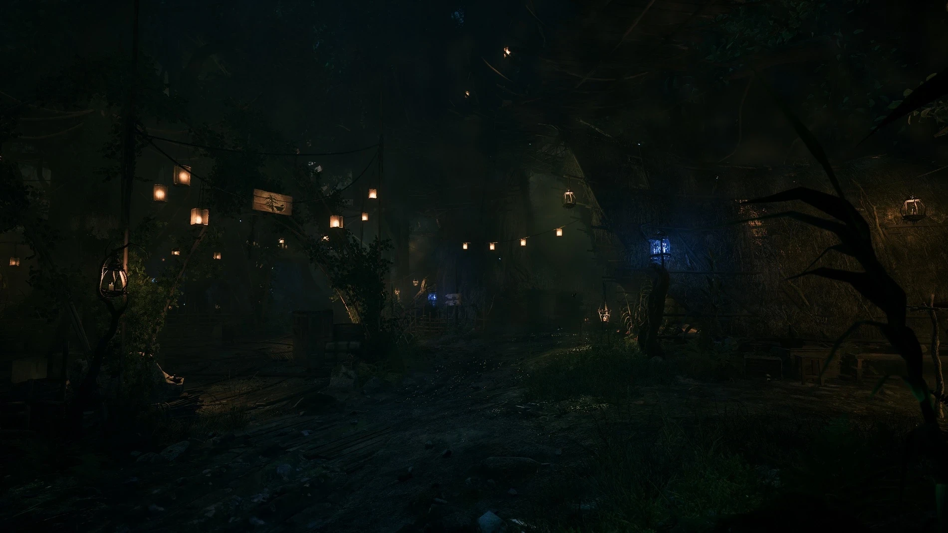 У нас нет настоящих рождественских гирлянд, чтобы украсить Колонию, но самое близкое к ним — это фонари в Болотном лагере».