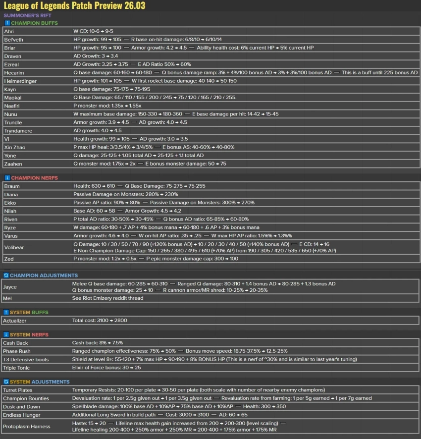 Главная » Статьи » Разработчики League of Legends представили список изменений патча 26.3