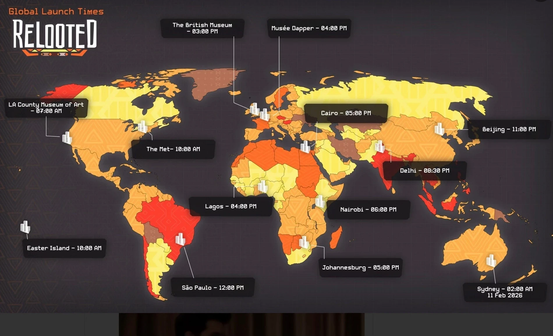 Кстати, перед выходом Relooted команда Nyamakop также припомнила мировому геймдеву несправедливое игнорирование Африки на картах релиза. Она опубликовала свой вариант, где было указано только 4 города.