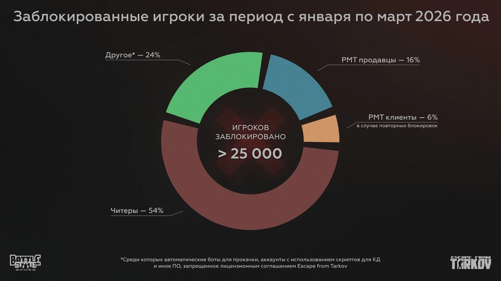 Главная » Статьи » Создатели Escape from Tarkov в 2026 году забанили более 25 тыс игроков — из них лишь 54% читеры